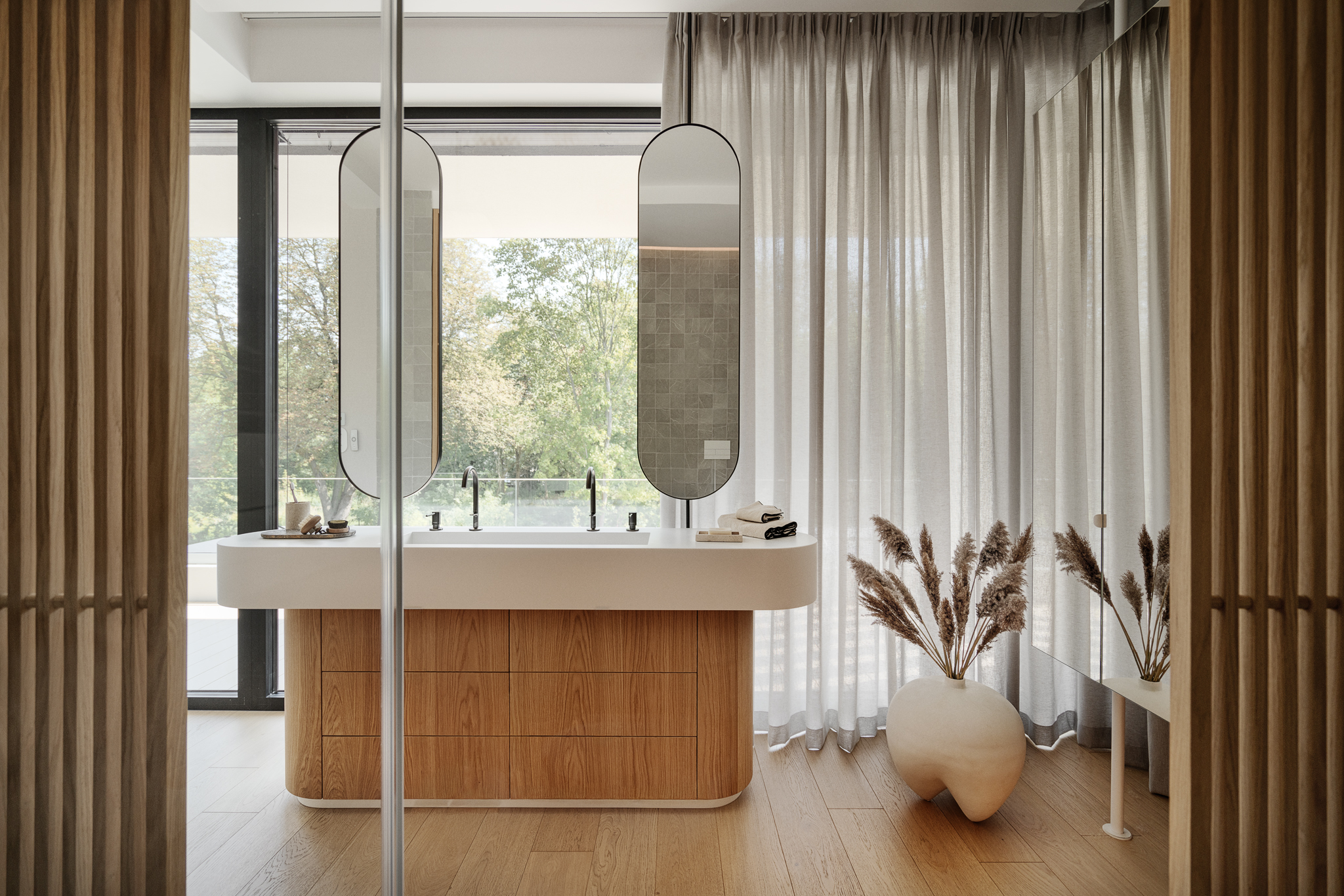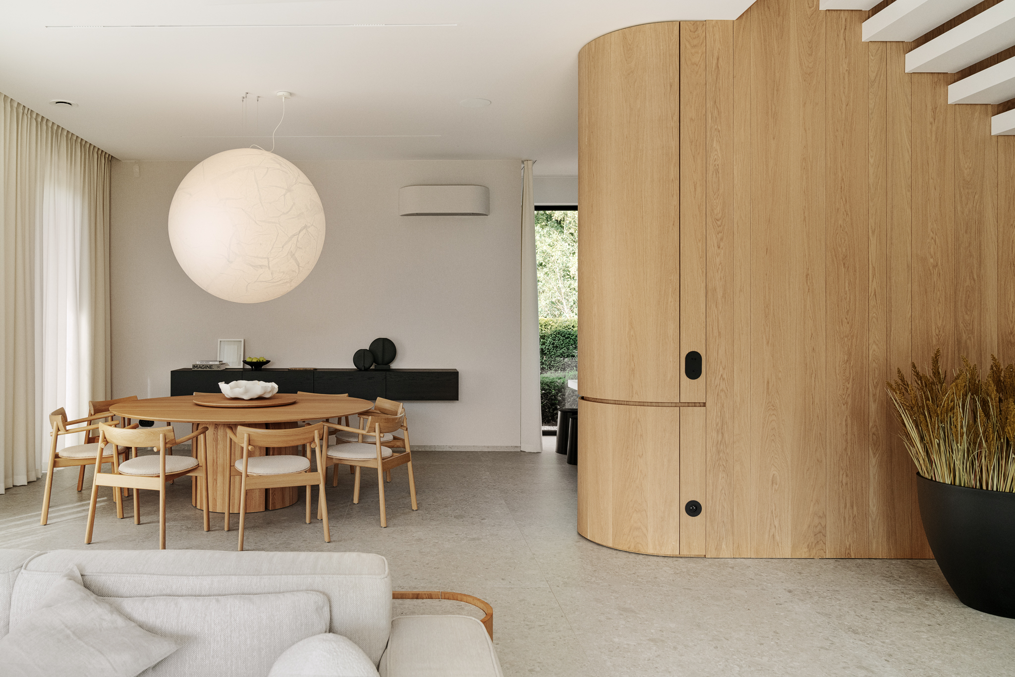 Zrealizowany projekt harmonijnie łączy nowoczesny design z naturalnym pięknem, tworząc